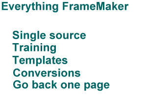 Conversions Got legacy documents to be converted? We can make almost anything into FrameMaker files. We automate as much of the conversion as possible, so we're highly efficient, which makes us inexpensive, too. Click here for more about what we do. |